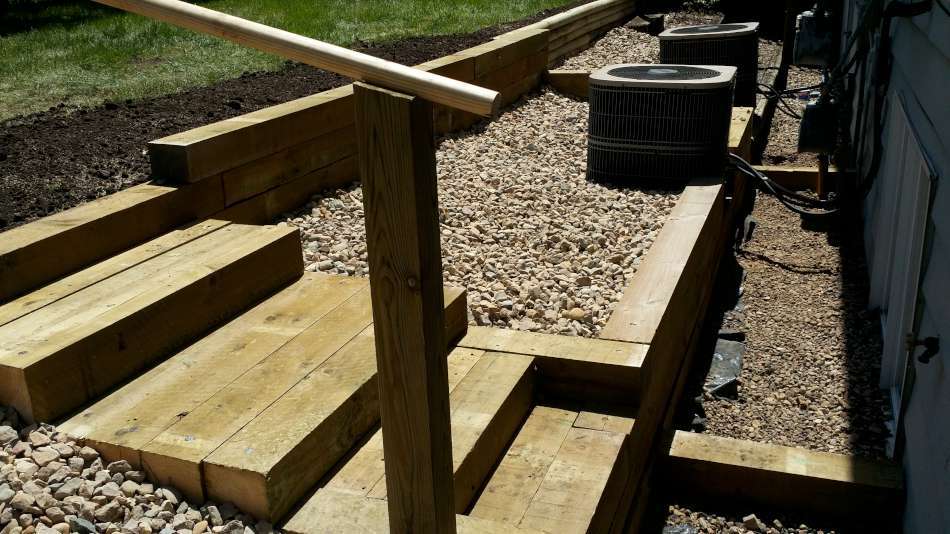 Finished A. & M. Benson raised patio with steps used 3 stone paver