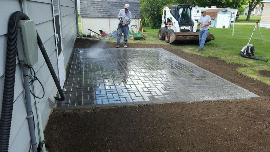 C. Gott finished back patio using Kingston Mega 3 stone pavers (Fieldstone)
