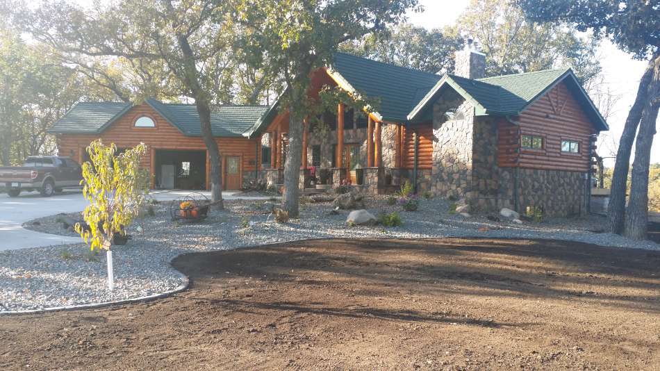R & B Bass finished landscape using Dakota Stone black and caps and plantings